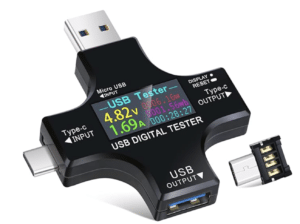 The COVERT’s Multi-Function USB and Type C Tester monitors voltage, current, capacity, electric quantity, power, load impedance, D+/D- voltage and other data of USB. You can detect surreptitious technical threats embedded within USB cables, charging ports and power supplies.